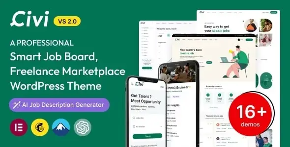 Trang chủ » Shop » Civi v2.0.9 – Job Board, Freelance Marketplace WordPress Theme