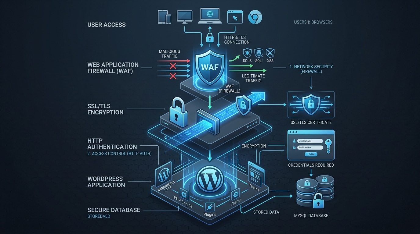 HTTP Auth là lớp phụ nhưng rất đáng giá. Nó đặc biệt hữu ích khi bảo vệ các điểm nhạy cảm như màn hình đăng nhập hoặc khu vực quản trị WordPress. Đây là kiểu lớp bảo vệ không hào nhoáng, nhưng lại giảm bớt rất nhiều va chạm từ bot và truy cập không mong muốn.