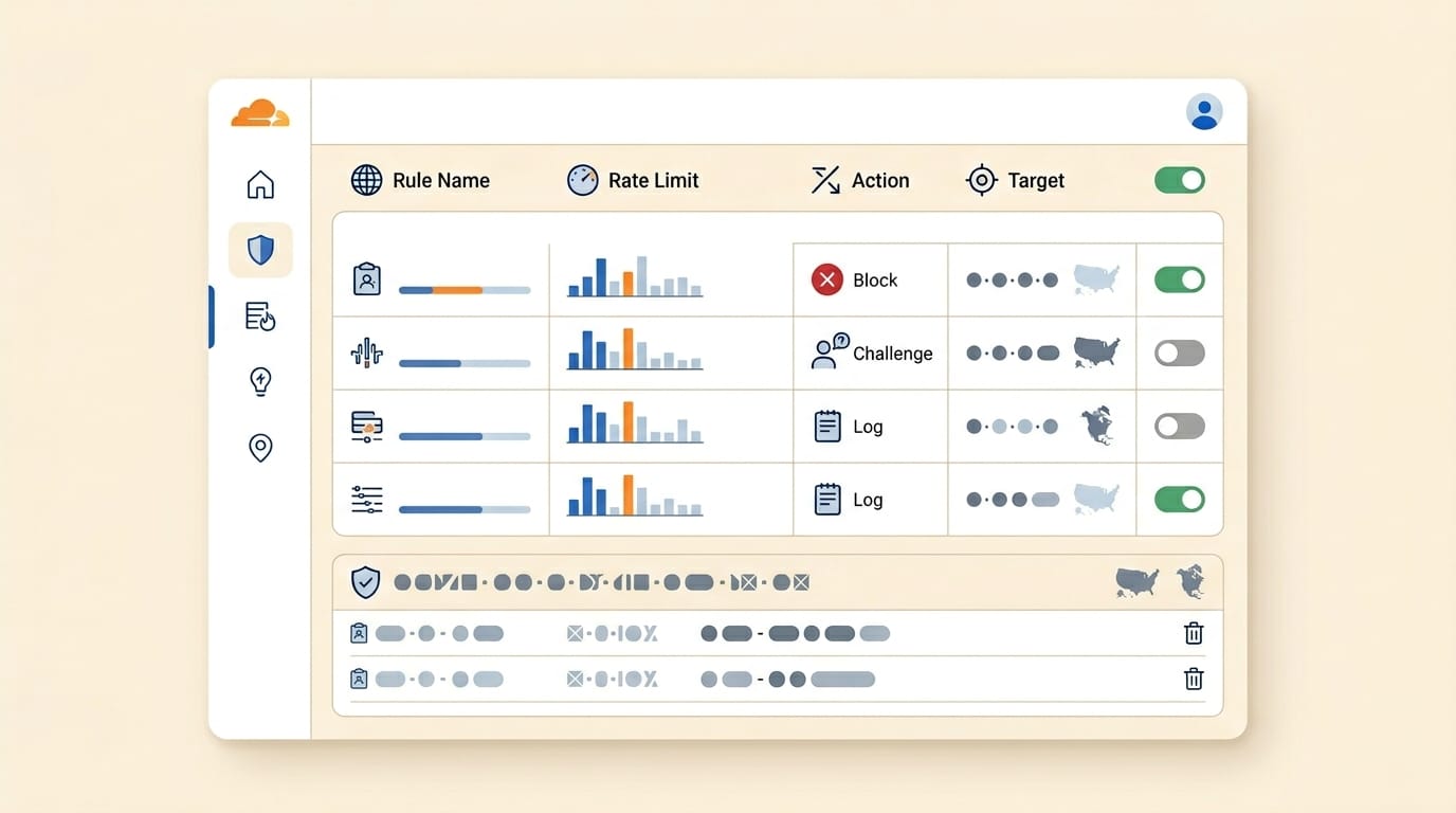 Cloudflare cho phép bạn tinh chỉnh rule rate limiting theo biểu thức match, ngưỡng request và action sẽ thực hiện khi chạm ngưỡng. Vì vậy, cách sửa hợp lý thường là điều chỉnh rule chứ không phải vô hiệu hóa toàn bộ lớp bảo vệ.