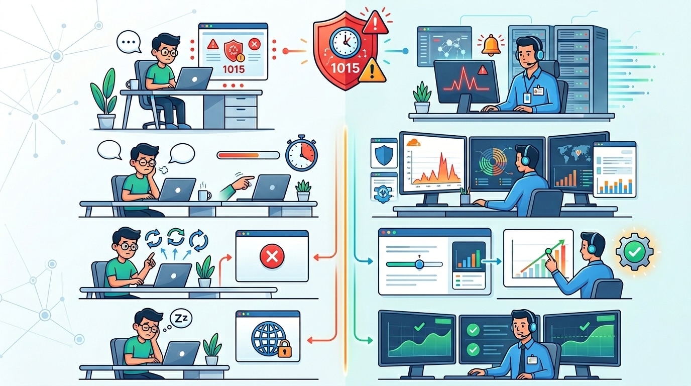 Vấn đề là một cấu hình quá chặt có thể chặn luôn cả khách truy cập hợp lệ. Vì vậy, khi gặp lỗi 1015, bạn không nên chỉ nhìn nó như “lỗi web”. Đây thường là dấu hiệu của một lớp bảo vệ đang hoạt động, nhưng hoạt động hơi gắt hoặc chưa được tinh chỉnh đúng theo hành vi truy cập thực tế.