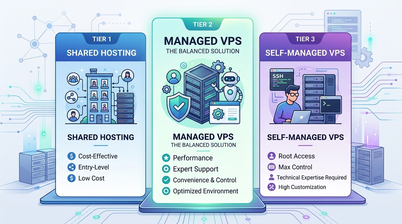 Một lựa chọn ở giữa mà nhiều người bỏ qua: managed VPS hoặc hosting cao cấp